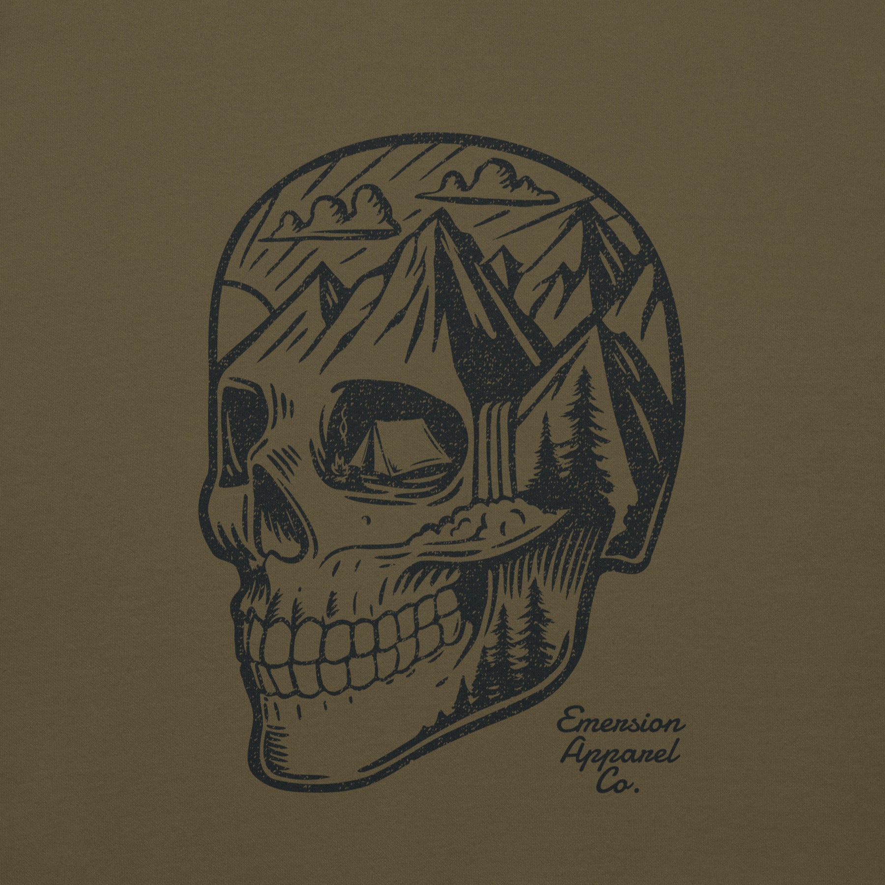 Stay cozy and showcase your love for the outdoors with this one-of-a-kind fleece hoodie featuring a captivating camping scene nestled within a bold skull design. This artistic blend of nature and adventure is perfect for those who find beauty in the wild and embrace the call of the great outdoors. This hoodie offers warmth and comfort, making it the ideal companion for chilly nights around the campfire or cool mornings on the trail. The relaxed fit ensures all-day ease, whether you’re out exploring or lounging at home dreaming of your next outdoor escape. Celebrate your adventurous spirit and inspire others to find their outside. Every purchase supports helping connect kids to the outdoors, through our donations to non-profit organization for youth, Outdoor Outreach.