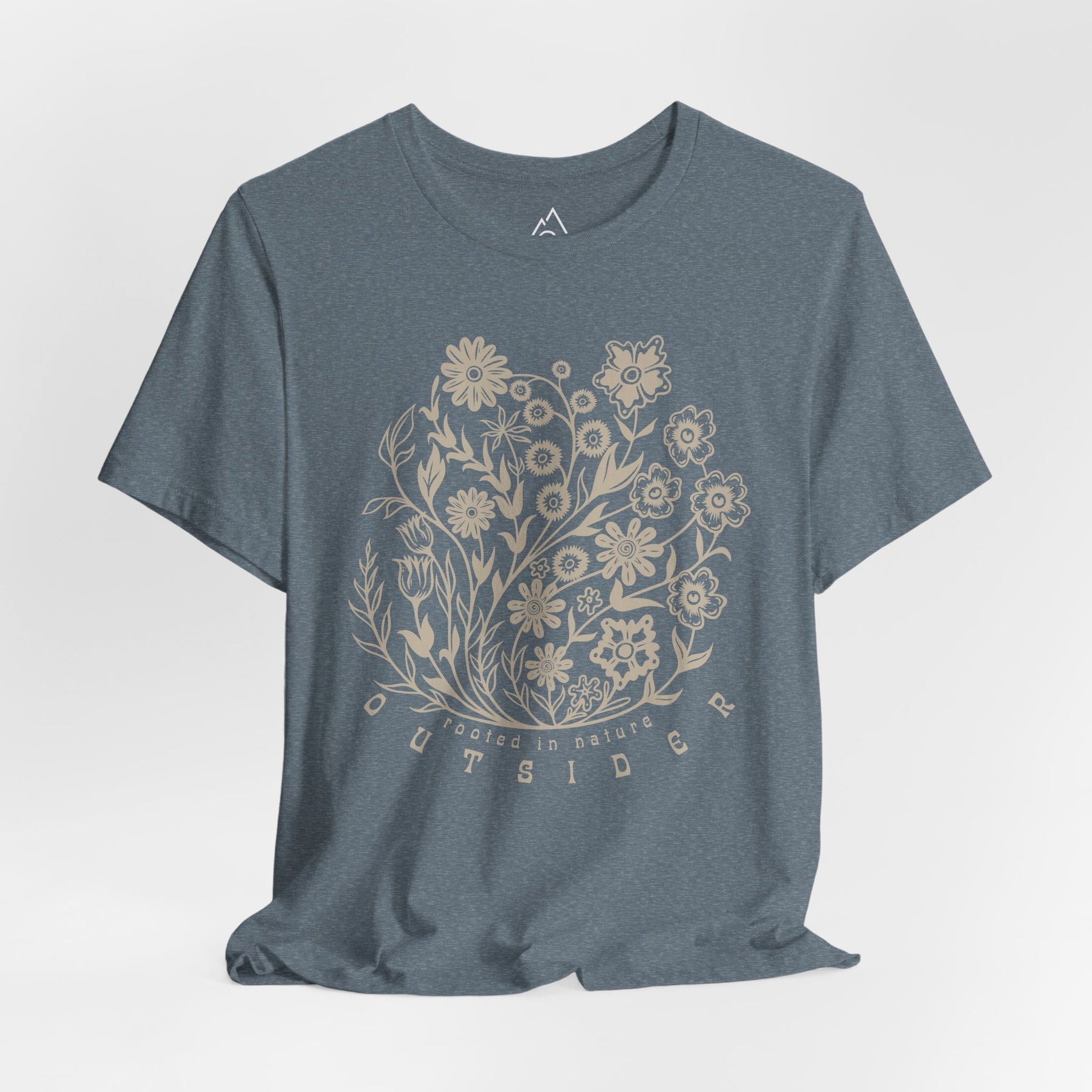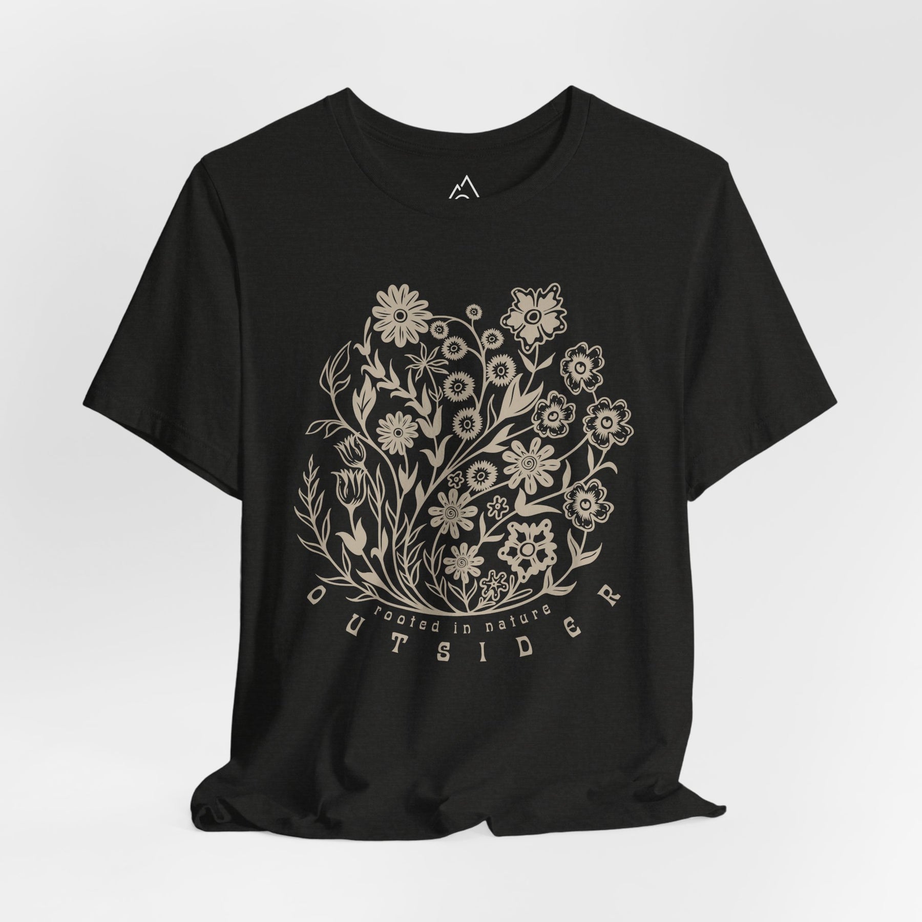 Embrace your love for the outdoors with this floral "Outsider" short sleeve graphic tee. Featuring a beautiful nature-inspired design with flowers and the phrase "rooted in nature", this unisex t-shirt is perfect for those who feel most at home outside. Soft, comfy, and lightweight, it’s great for your next outdoor adventure. Every purchase supports helping connect kids to the outdoors, through our donations to non-profit organization for youth, Outdoor Outreach.